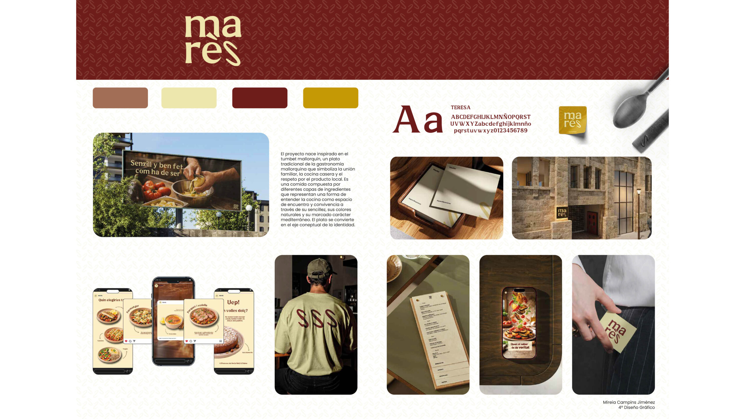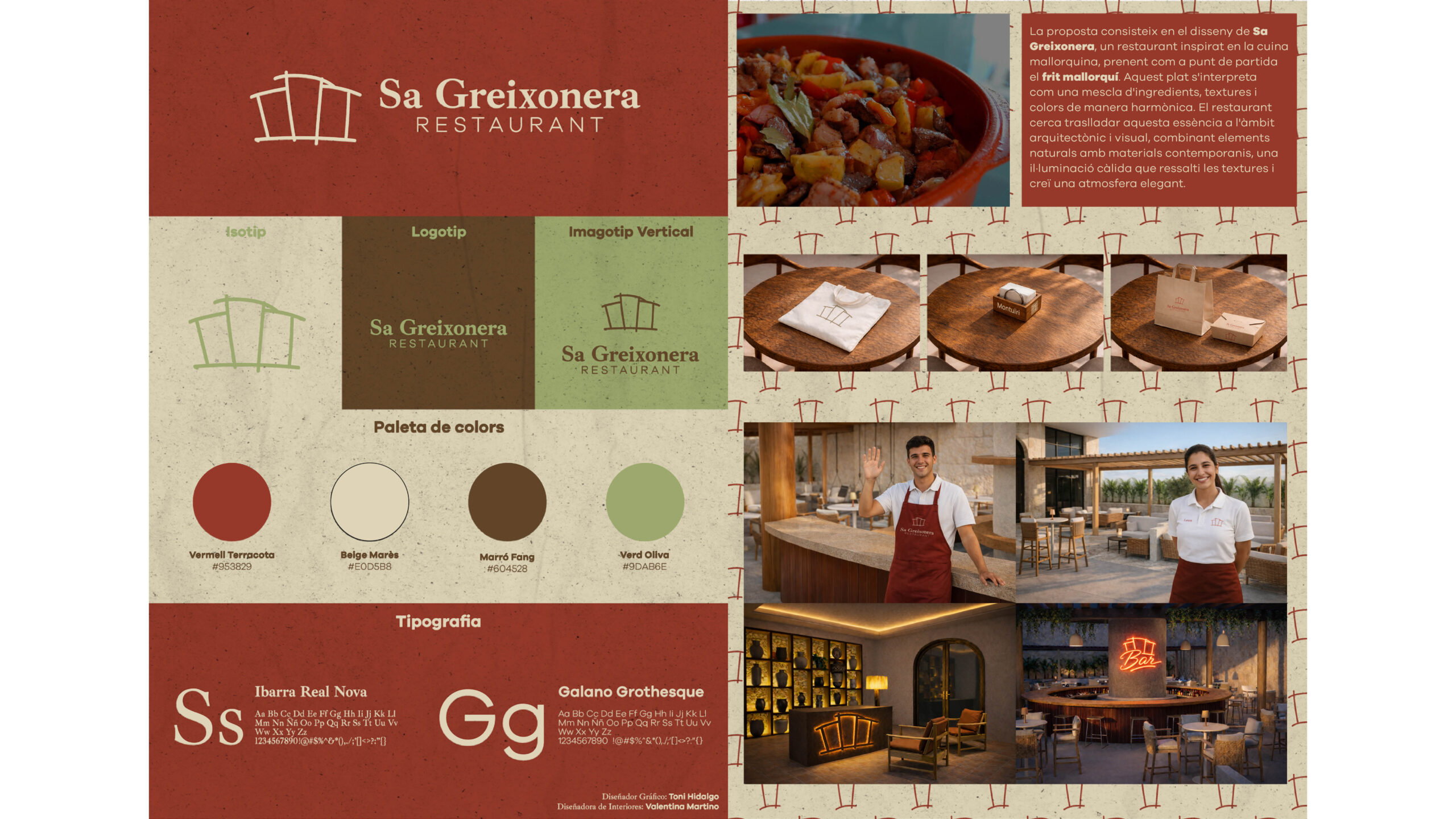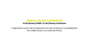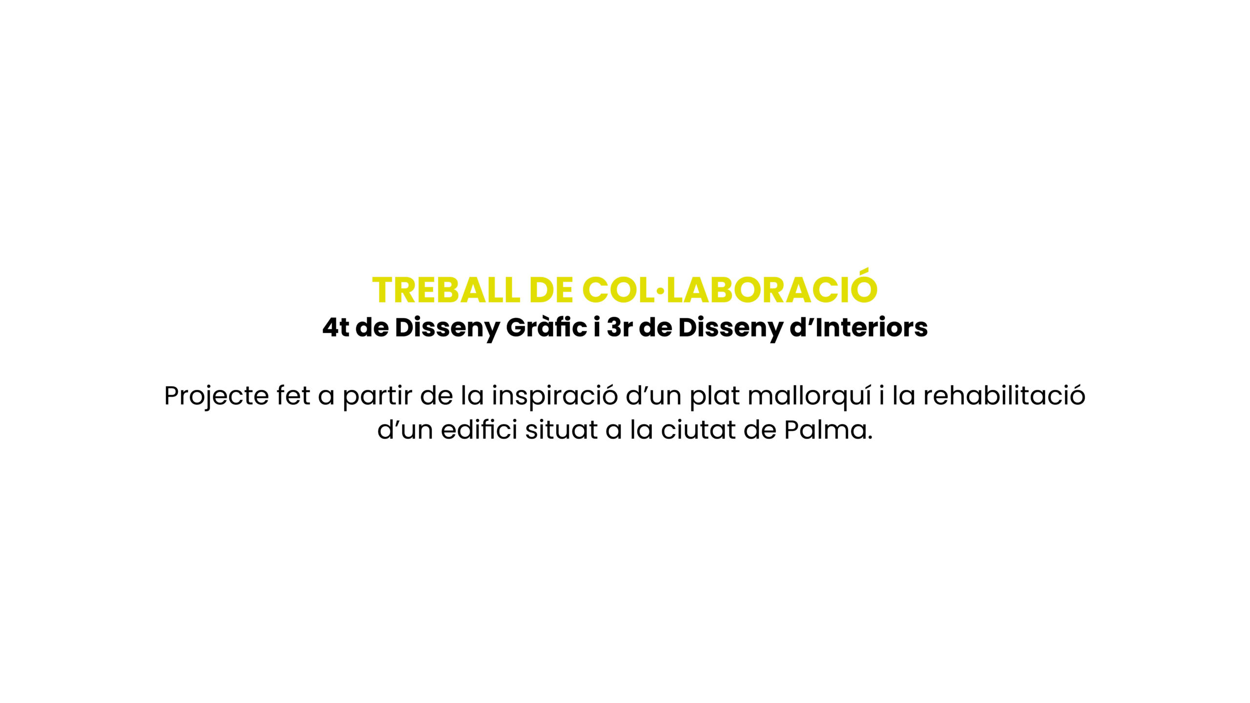 El punt de partida ha estat un plat tradicional mallorquí i la rehabilitació d’un edifici situat al centre de Palma. A partir d’aquí, l’alumnat ha desenvolupat conjuntament una proposta integral de restaurant, treballant des de la conceptualització de l’espai fins a la definició de la seva identitat visual.
